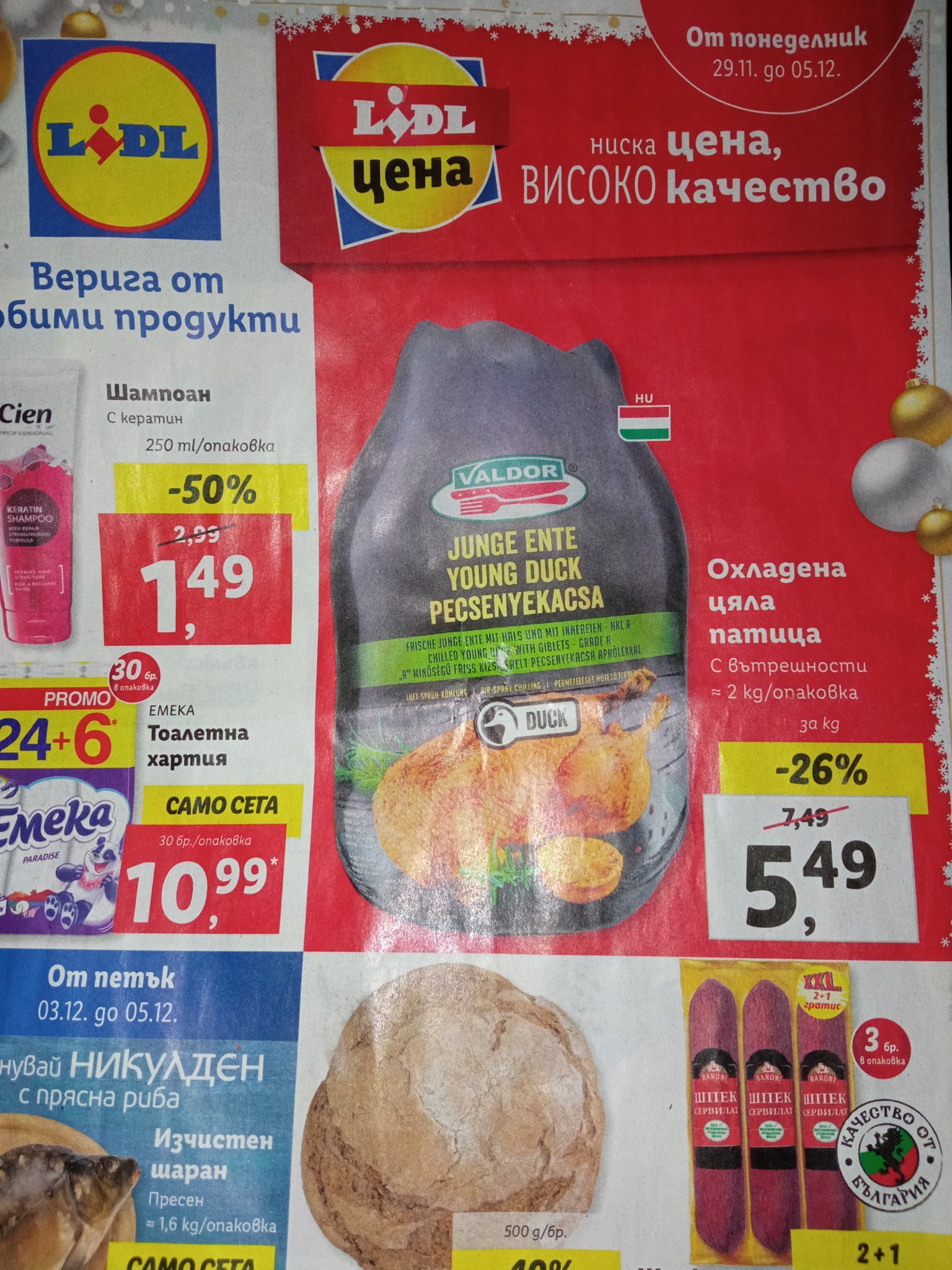 А в моята хартиена брошура на първа страница има патица, в онлайн брошурата е свински врат, кое е грешното? А тъкмо се наточих да ходя утре за патица 🦆 🤔
