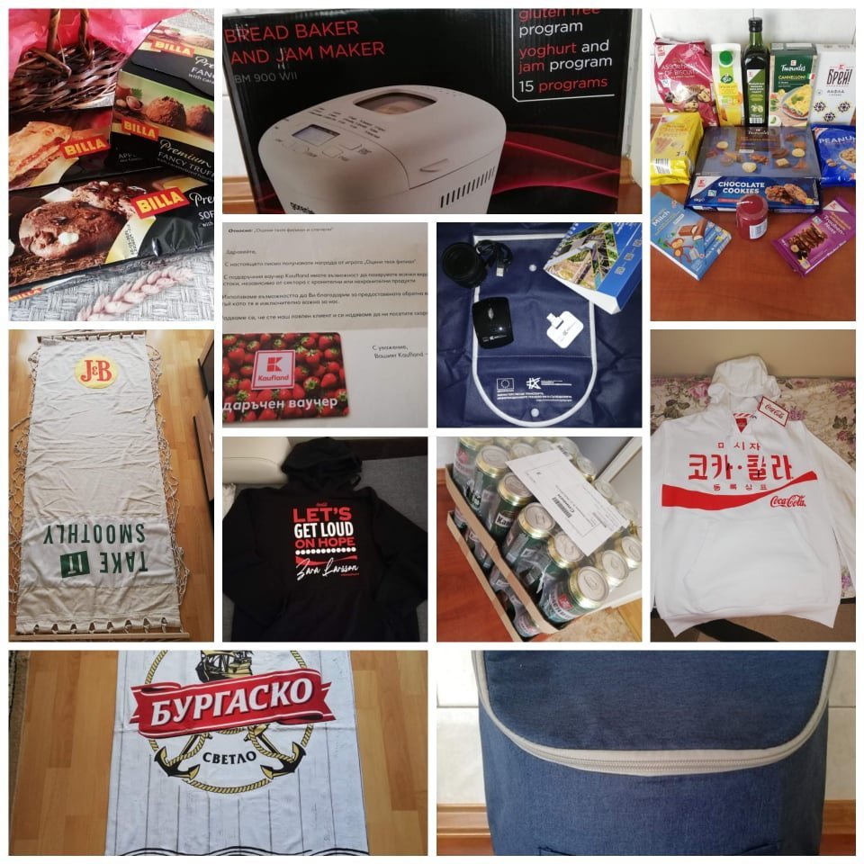 Като ви чета колко награди печелите, ме стимулирате да продължавам да играя. От началото на годината имам спечелена само една кутия с хранителни продукти и една топка, а участвам в доста игри. Надявам се този месец вече да се отприщи късметът.