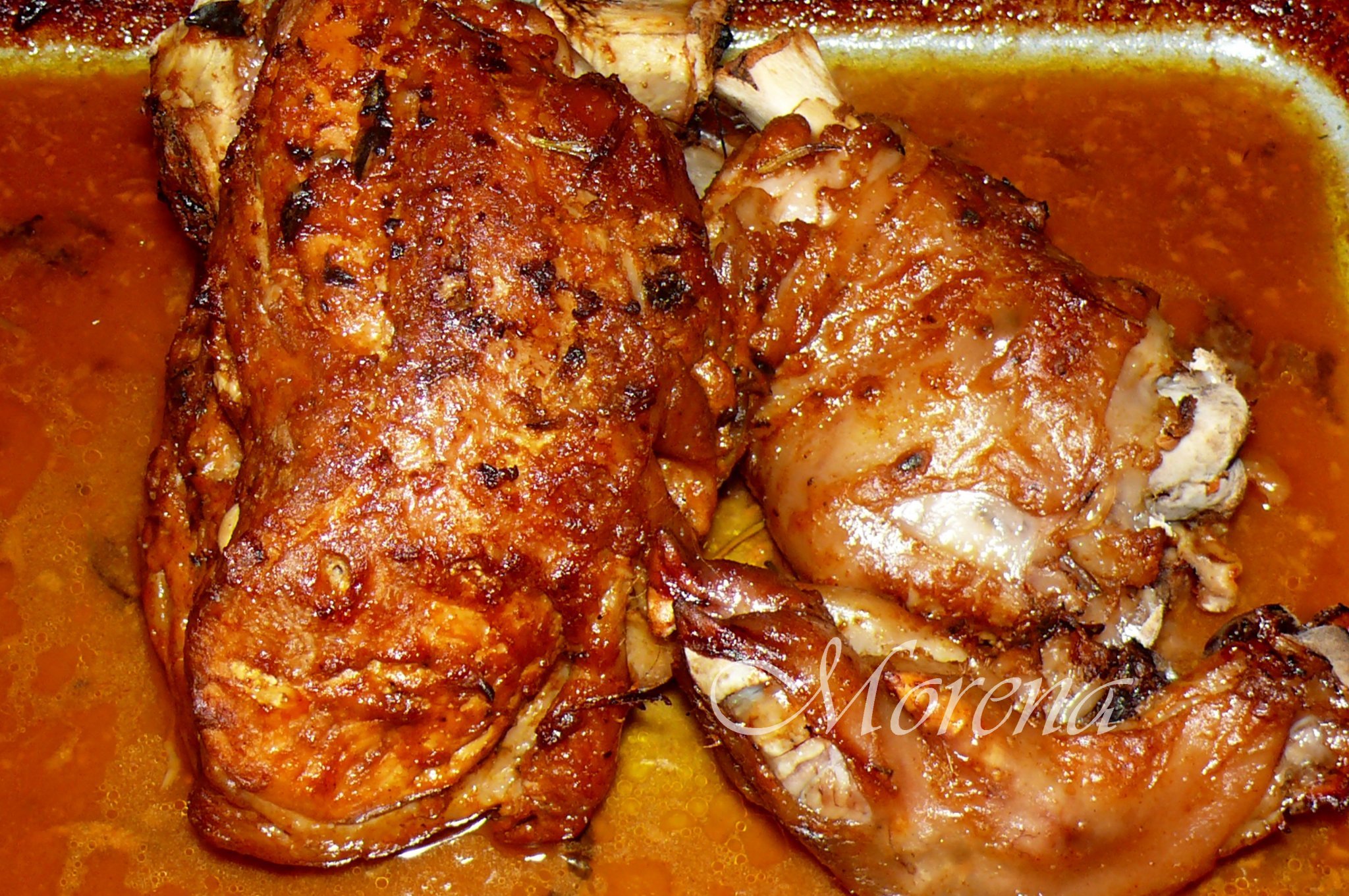 В нашия Лидл бяха свършили пуешките бутчета, та пекох свинска задна четвъртина... с печени картофи и ябълков сос.