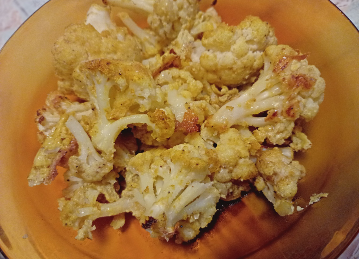 Карфиол на фурна със зехтин, къри, черен пипер, галета и яйца, но не точно паниран 😃