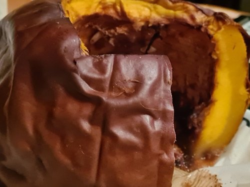 Пак печена тиква, този път цяла, от ония оранжевите, хелоуинка. Обаче само на дъното беше сладка, нямаше как да хвърля захар по стените Satisfied А и беше малко на конци, разочароващо. И половината остана за утре. Ако оцелее, ще я правя на пай или кекс нещо, очаквайте втора серия.