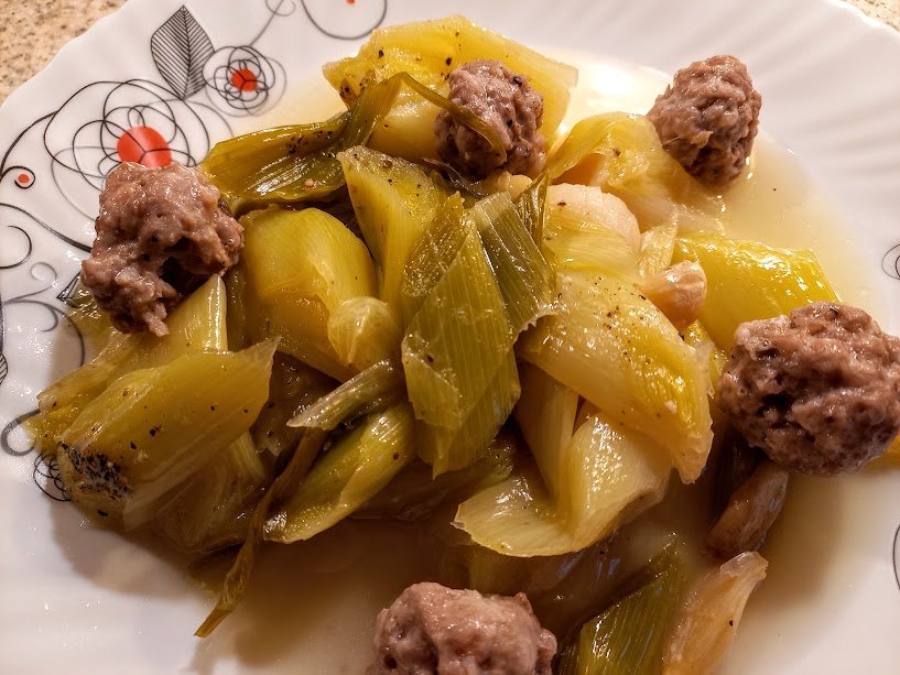 Нещо просто и вкусно.Жалко,че само аз съм любител на праз у нас.Другите го ядат в баница, но сготвен не.