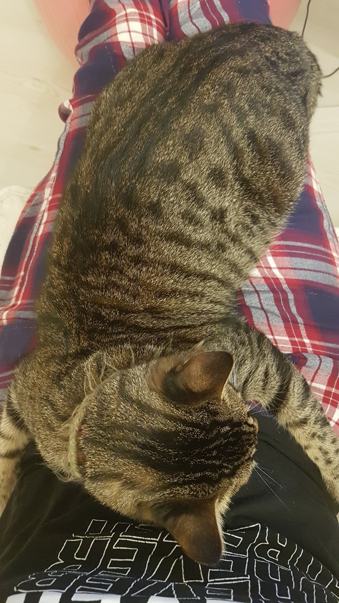 Тази сутрин все едно усети, че няма да съм в къщи. От сутринта в краката ми и мяу, мяу. Досега му чувах гласчето само като ме изгуби. Поне младежа беше в къщи и му обръщал внимание от време на време.