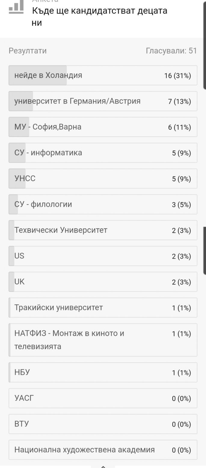 Малко ми е странно - най-много за Холандия и ни един за УАСГ. Какво се случва с тази Холандия, какво правят децата като завършат там? Отиват в друга държава в западна Европа, остават в Холандия, връщат се в България?