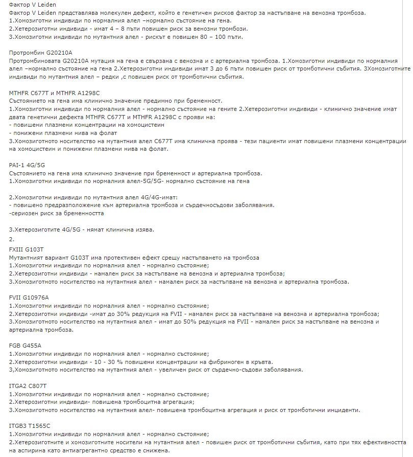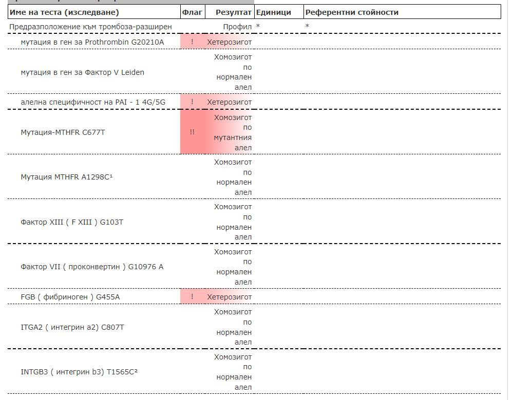 Бях при Доц. Русев на консултация и той каза , че трябва да пусна цялият пакет за тромбофилия ( миналата година пуснах основният ) и сега видях е резултата 😱😱 Аз въобще как съм жива с толкова мутации . !