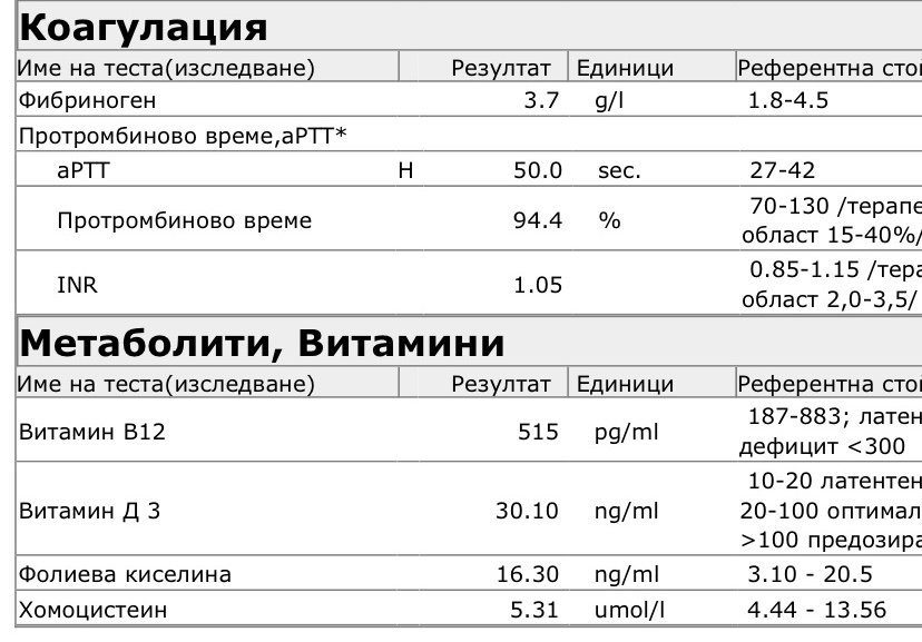 Генетичните изследвания за тромбофилия включват фактори като Фактор V Лайден, Фактор II Протромбин, Plasminoogen Activator Inhibitor, Метилентетрахидрофолат редуктаза и допълнителни фактори като Angiotensin I-Converting Enzyme, Methioniine synthase reductase , Vascular endotheliaл growth factor A и Procarboxypeptidasе U. Тези изследвания се провеждат в специализирани генетични лаборатории, анализиращи генетични мутации, свързани с намалено усвояване на витамини B9 и B12, както и други рискови фактори за тромбофилия.