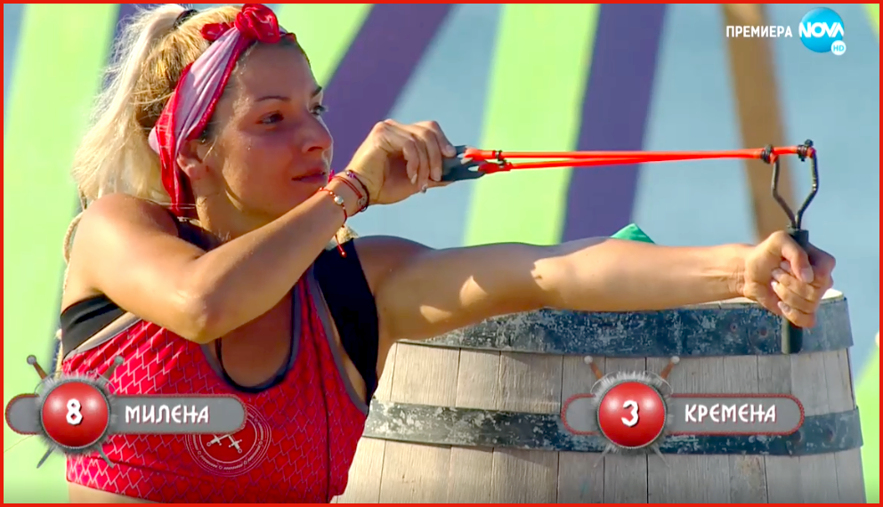 Някой подсказа ли им как да държат прашките? В началото Милена не държеше правилно ластика с камъка и не уцелваше. Накрая видях, че го държи правилно и целеше много. (Средата на дуела прескочих).