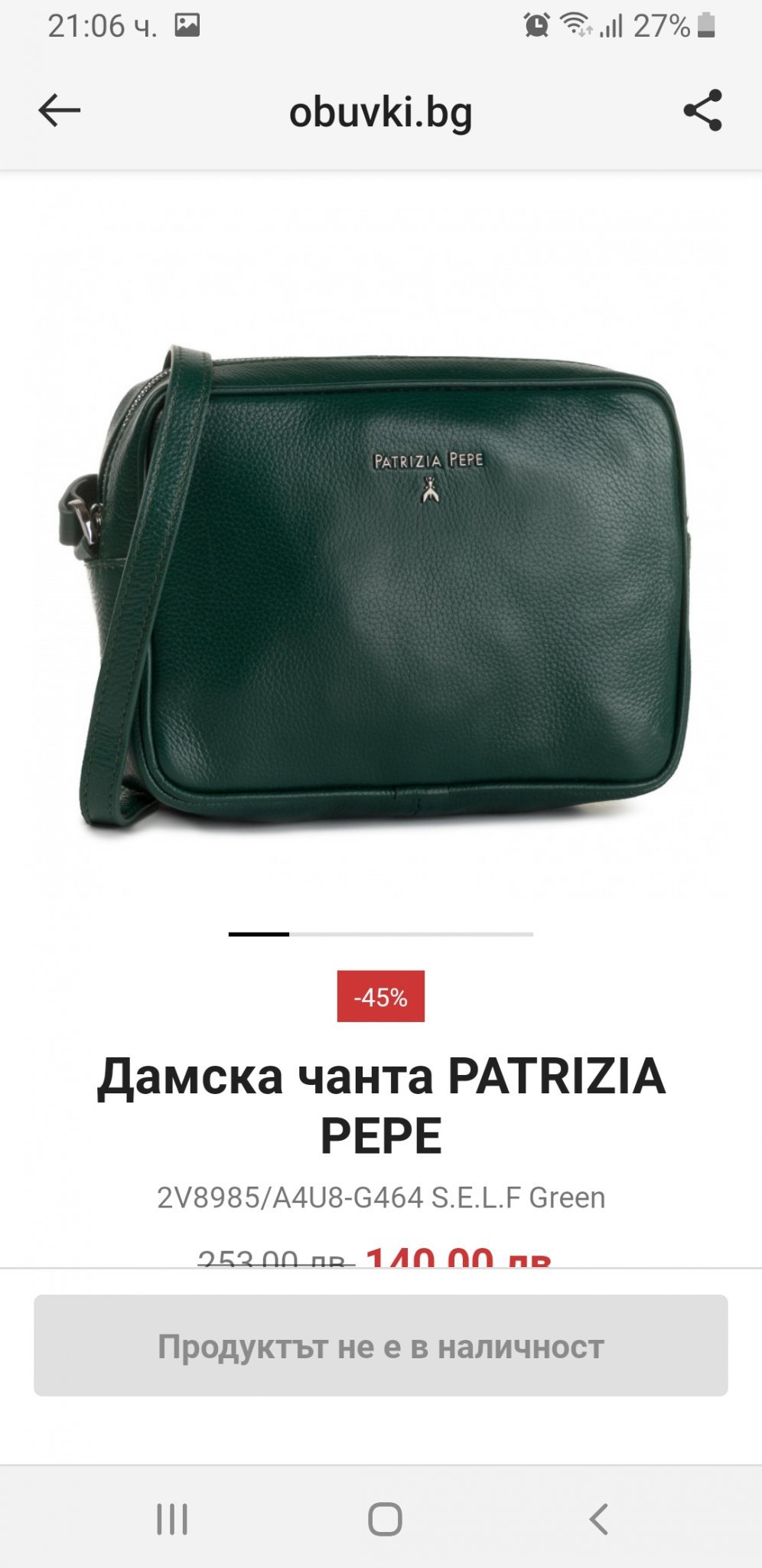 От известно време отлежава, защото обмислям дали да не я върна. Реалният цвят е по тъмно зелено, отколкото на снимката и описан като изумрудено зелено.