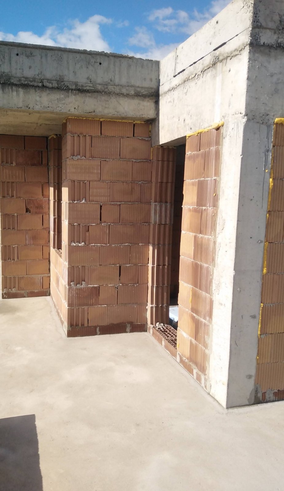 Ето каква беше последователността: иззидаха тухлите, сложиха парчета рязани на машина, където успяха; след това ММ запени всяка малка дупчица с пяна.