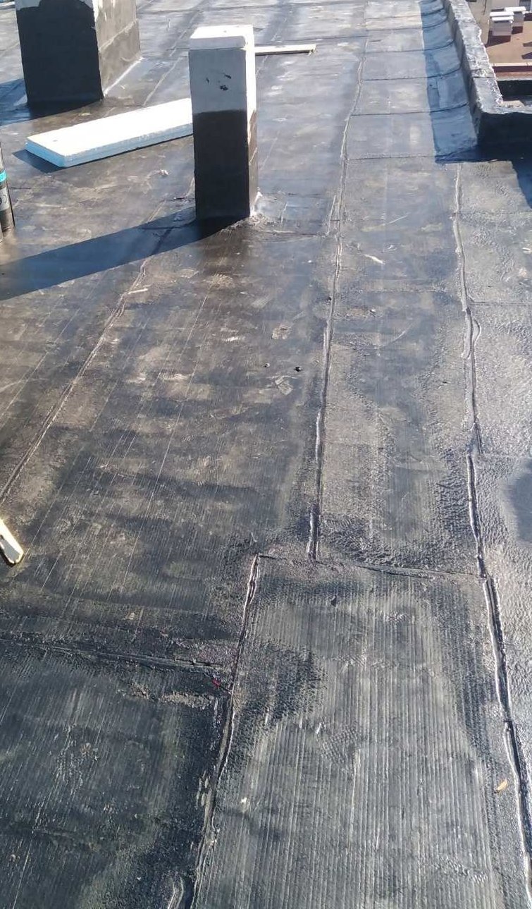 6. кръстосаха долния гладък пласт с 4,5 мм хидроизолация с посипка.