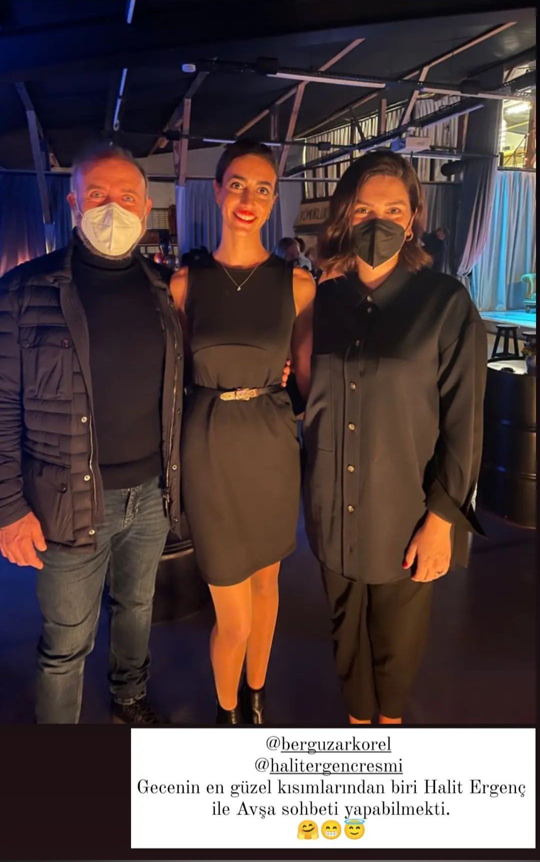 Берг и Халит с балерината Ада Нил Карамехмадоолу на официалното откриване на балетното студио "İN" вчера. Ада Нил е написала - "Един от най-хубавите моменти от вечерта беше да поприказвам с Халит Ергенч за Авша..."