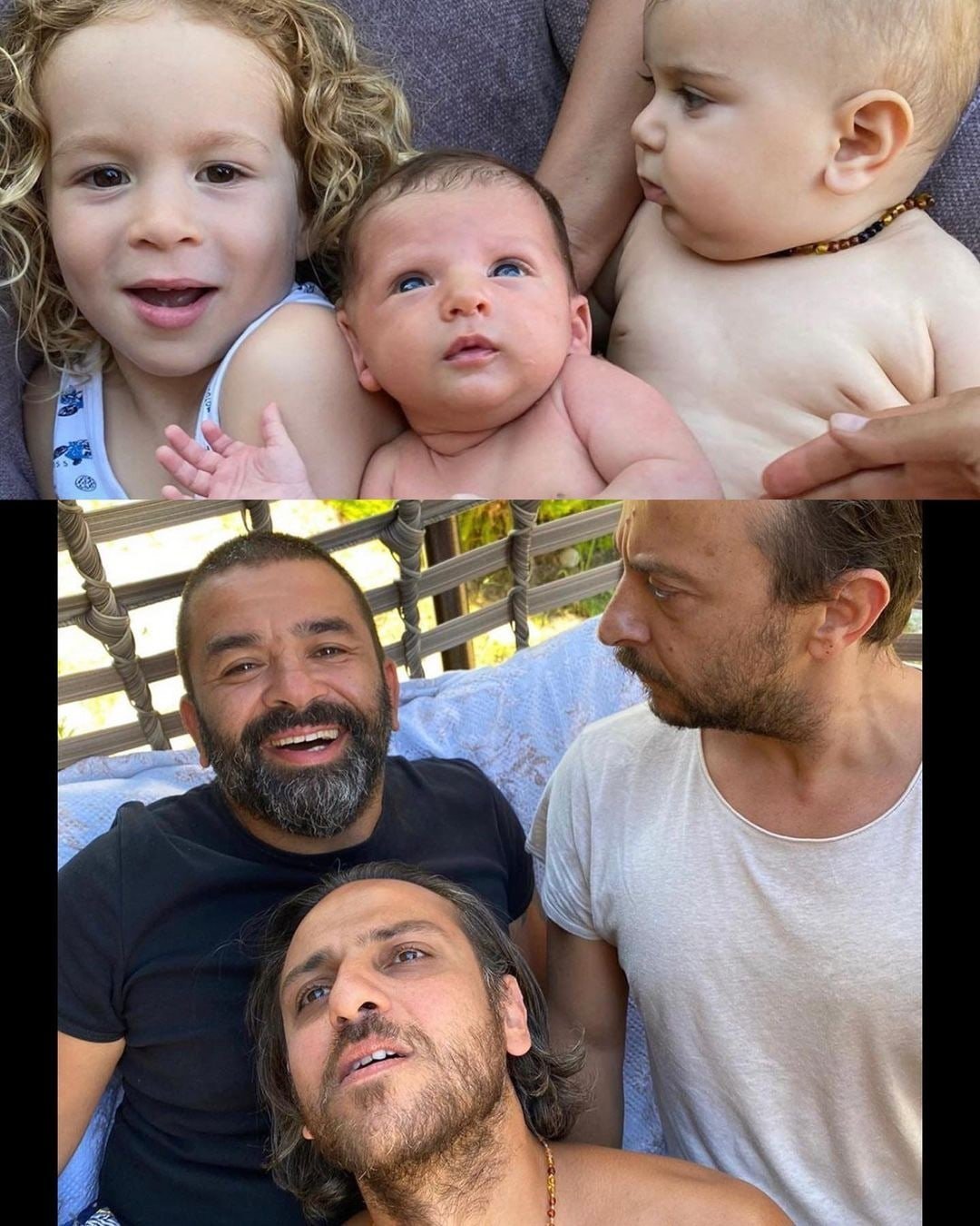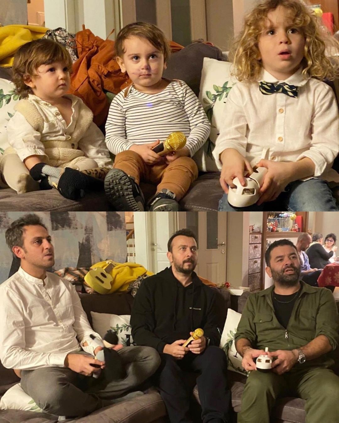 На ней : на одной, популярные турецкие актекры, а на другой - их сыновья.
