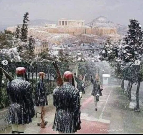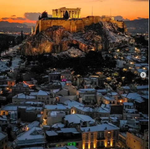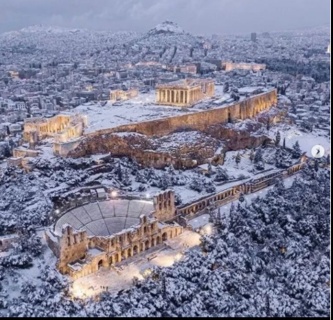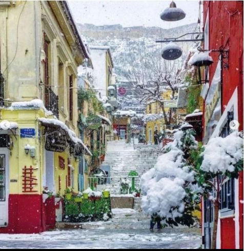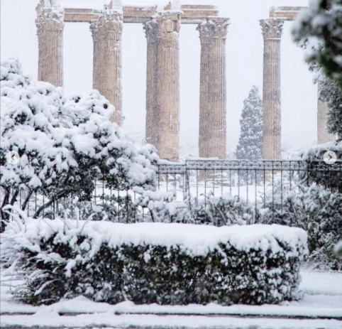 В Атина също има необичайно количство сняг.