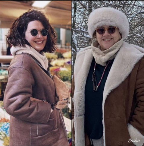 Единствената разлика в двете зимни палта е, че на Хюля е от естествена кожа.