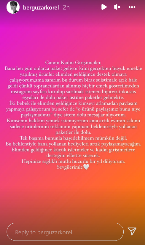 Преразказвам накратко - някои от тези, които ѝ изпращат стоки за реклама, всъщност са купили бижута, катарами и дрънкулки от търговци на едро и искат да ги продадат без никакво усилие. Холът ѝ е пълен с опаковки, но с две бебета, колкото и да опитва - не успява. Получава съобщения, че е споделила един продукт, а друг - не. Затова вече няма да може да споделя изпратените ѝ подаръци.