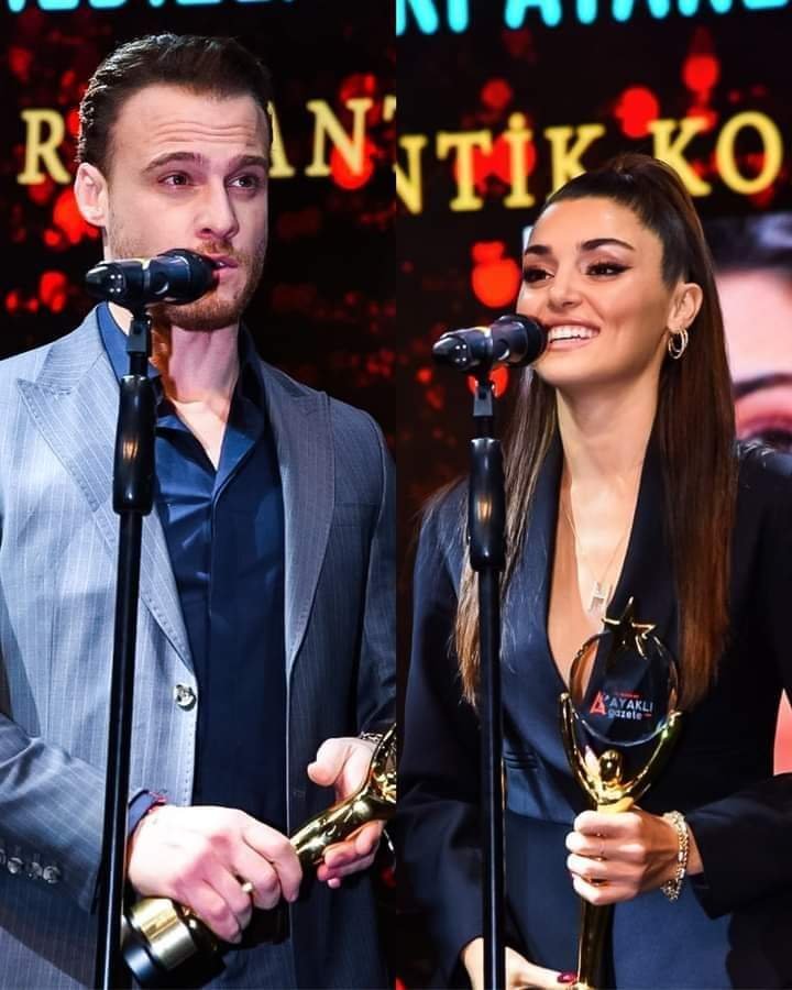 Значи доста се е напрегнала, защото го правеше и на доста други кадри. Stuck Out Tongue Winking Eye Според мен това си е той , обича да си я докосва, а пък тя е доста по-обрана.  Снощи ми попадна едно клипче на Керем и Серенай пак от някакво подобно събитие и сега не ми се търси да ви го показвам , пък и не искам да го гледам пак Joy, но Керем си я прегръща яко през кръста, тя също си е преплела пръстите в неговата ръка, след това я прегръща през рамо и я целува по главата с ясното съзнание , че ги снимат Joy Просто си е такъв експресивен човек , когато е влюбен Heart И понеже Ханде явно не му дава много , много да я докосва публично се радваме само на влюбени погледи Heart Eyes Stuck Out Tongue Winking Eye