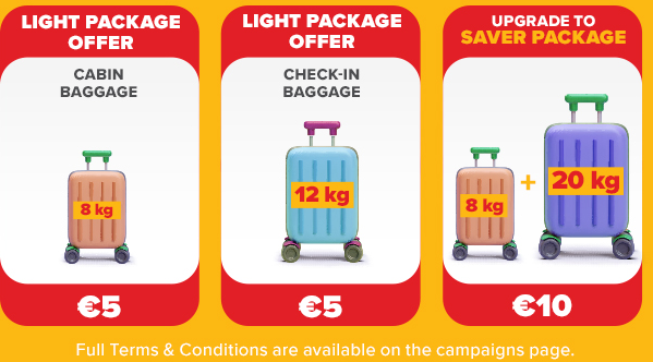 Campaign Offer: Pegasus BolBol members who book Light Package tickets for the specified international routes between 1 November 2024 and 30 March 2025, for flights booked on 10-11 October, can enjoy prices from 9€ + taxes! In addition, for guests purchasing the Light Package, additional cabin baggage allowance is €5 and 12 kg Check-in baggage allowance is €5! You can also choose the Saver package by paying an additional €10 on top of the Light package ticket price! Book your flights at flypgs.com and the Pegasus mobile app and don't miss out on this opportunity valid for 250,000 seats!.
