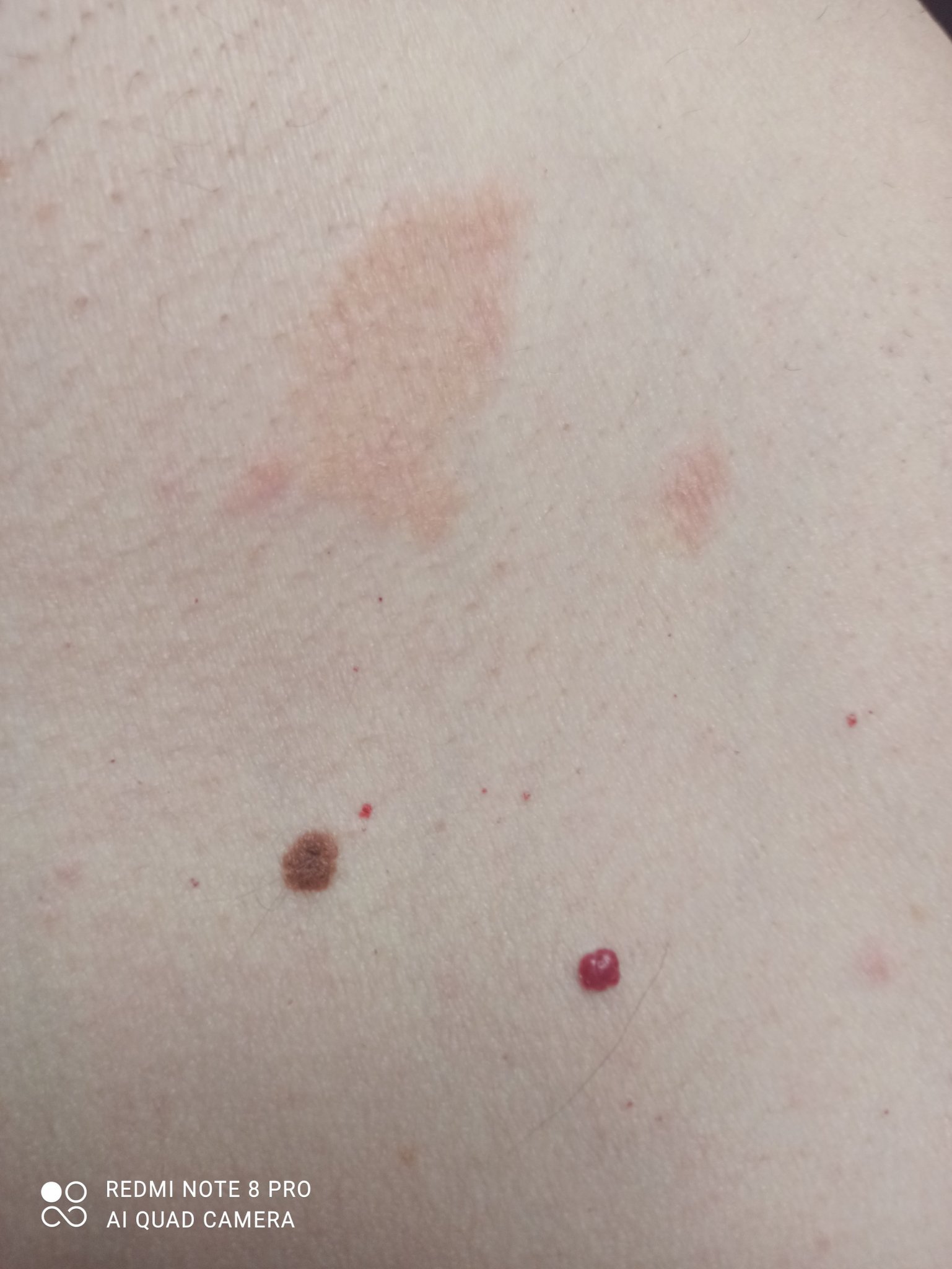 Здравейте, пиша ви по повод петното което ви пратих. Намира се в зоната под мишницата. Няма сърбежи. От около два месеца е. Имаше подобно и на крака. Мазали сме с антимико бета - спит. Първото изчезна, но сега става по-голямо. По повърхността е сухо с малко люспи. Мислихме, че е котешки лишей и затова използвахме спирта. Касае се за мъж