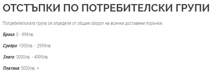Дава различни отстъпки според групата, но за доставката не мисля, че има значение. И аз съм злато, но си ме таксува под 30 лв.