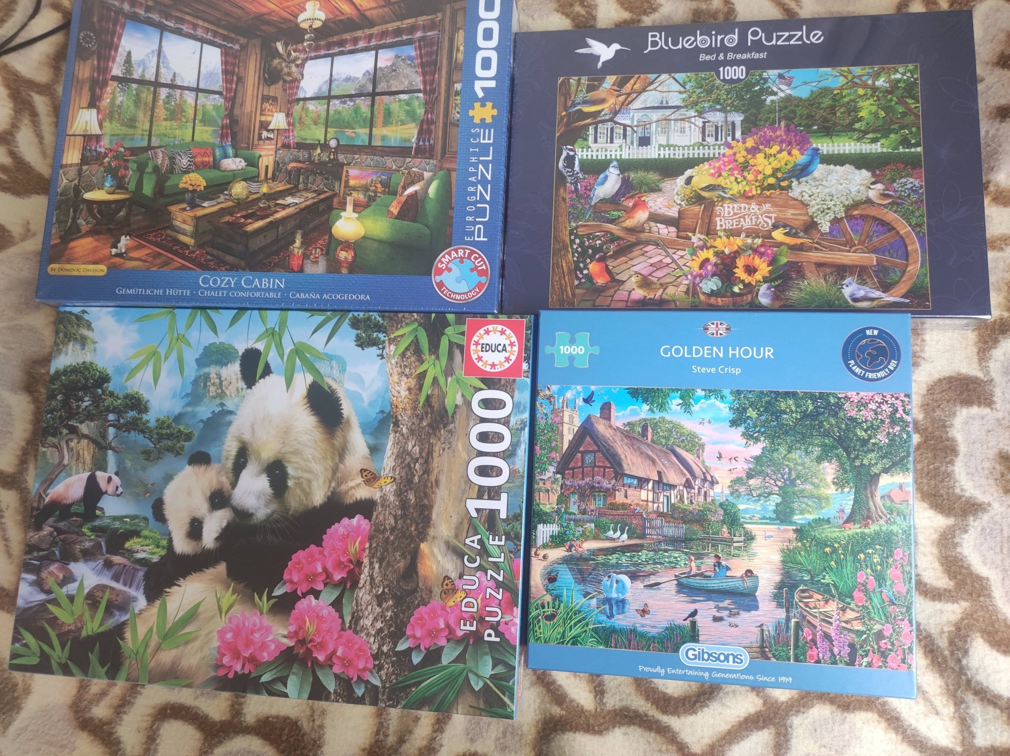 Днес озон ме изненадаха. Две седмици ви чета и си викам няма смисъл да купувам много пъзели, един редя горе-долу за месец, че нямам много време. Обаче вчера сутринта какво ме прихвана и поръчах 4 пъзела, които днес бяха доставени. Място също нямам, но ви се радвах като получавате пъзели и така 😀