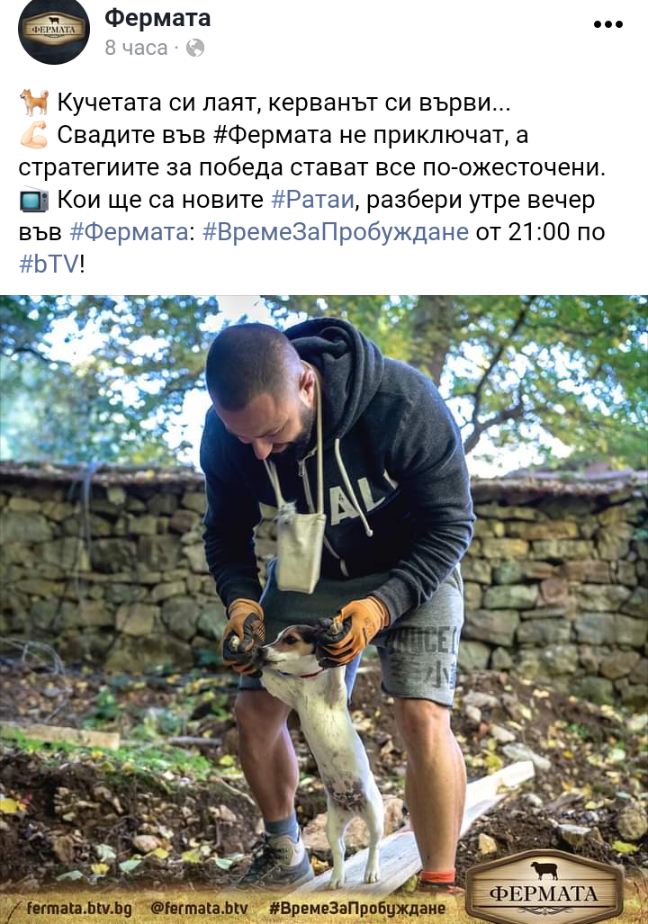 Моля вижте последния пост на Фермата във ФБ... Кучетата си лаят, керванът си върви... Звучи ми като един голям среден пръст за всички зрители, които се бунтуват срещу продуцентските любимци...И сложили малкото куче с голямата маймуна, барем се разчустваме от умиление ли, що ли?