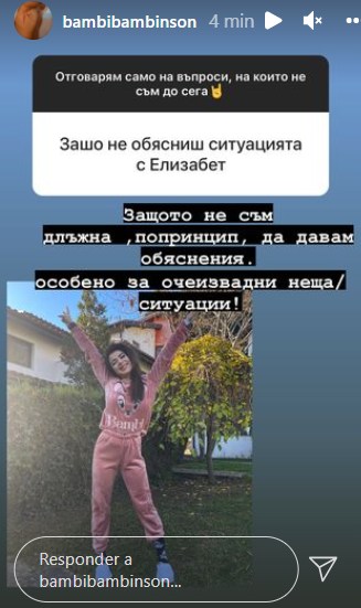Хич и не го пусках. Не се учудвам, че е била в предаване за чалгата. В сторитата, които качва, шофира с надута до дупка чалга, качва видеа всяка седмица от чалга клубове. Самата тя е чалга - и външно, и вътрешно - със самочувствие до небесата. Тя е от хората, които ги плюят, а те мислят, че е росица божия.