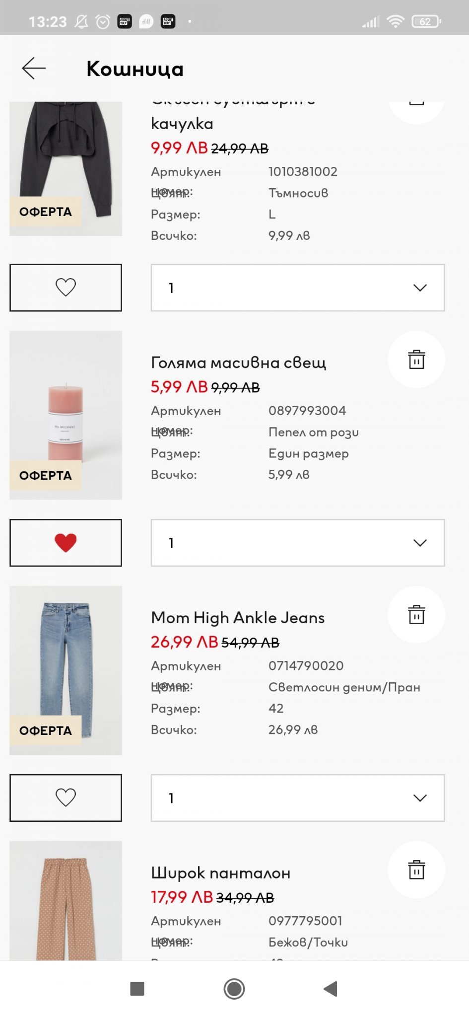 H&M предлага възможност за връщане на стари дрехи, независимо от марката и състоянието им, във всеки магазин на H&M. Този процес е част от програмата за рециклиране на текстил и участниците в нея получават талон за 15% отстъпка при следващата си покупка, ако сметката им е над 40 лв. Условията за връщане включват размер на торбите, прием на всякакъв тип дрехи (без бельо и обувки), и валидност на талона за отстъпка.
