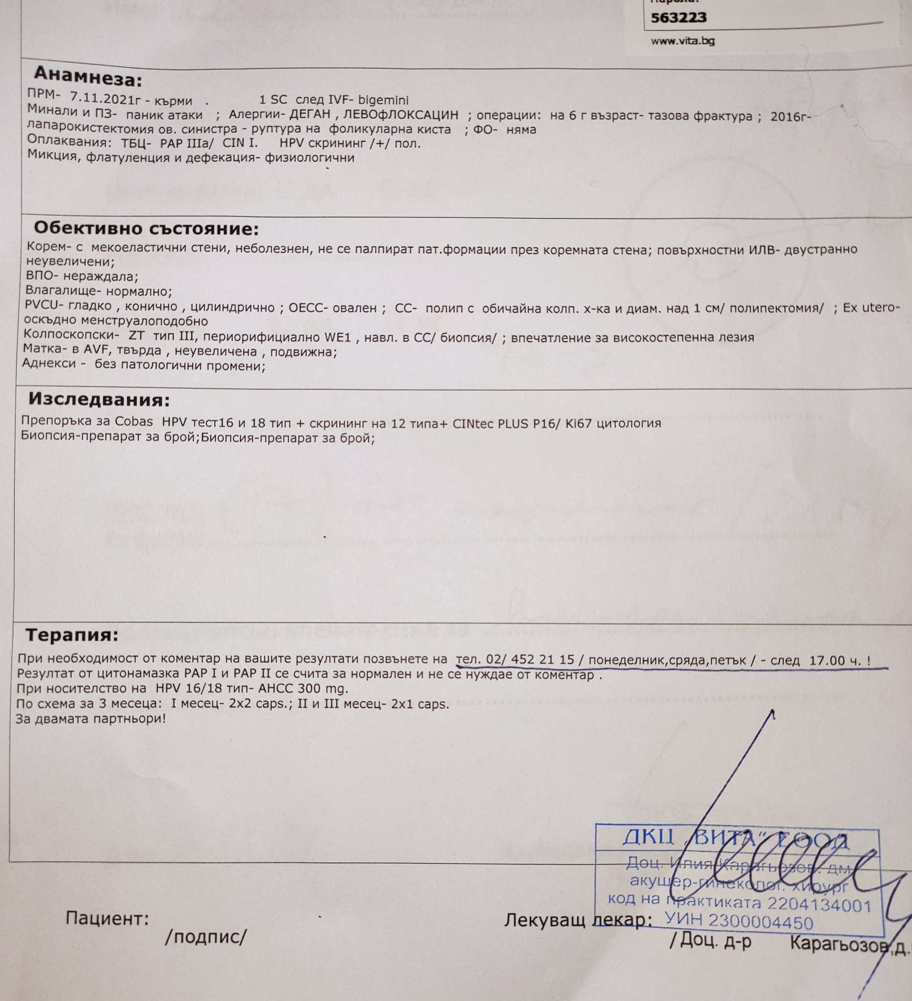 Резултат днес от цитонамазка след 3 месеца от последната…. Няма дисплазия, няма възпаление, няма изменени клетки.( Този резултат излиза при Цито в Англия).