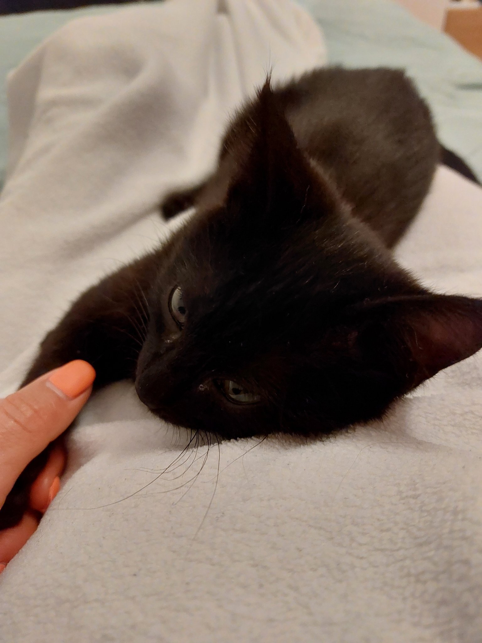 Аз днес дадох третото, последно хапче за обезпаразитяване. Хем уж го бутнах в гърлото и му затворих устата, ама тоз дивак не преглъща. Изскубна се и го изплю. Втори път го мушнах в устата, уж го глътна. Дано. Не съм го намирала на земята. До сега се забавлява и скача. Взех му въдицата с мишка за втора играчка, за да си играем заедно. Другата е за самостоятелно ползване Joy