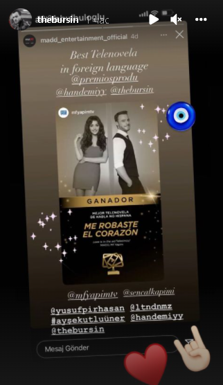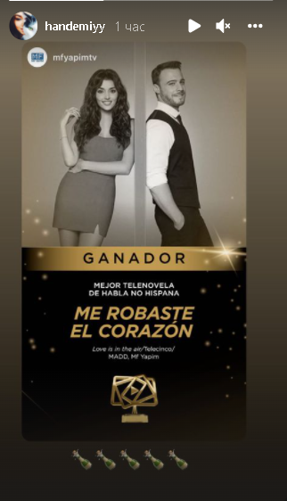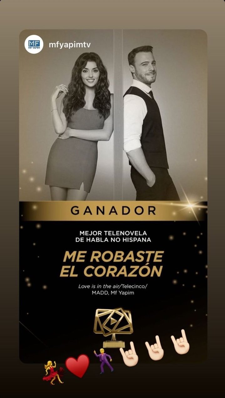 Много се радвам, че спечелихме поне една награда. Не съм разочарована в никакъв случай. В крайна сметка Ханде и Керем вече имат най-ценната награда-любовта и подкрепата на публиката.🏆🥰