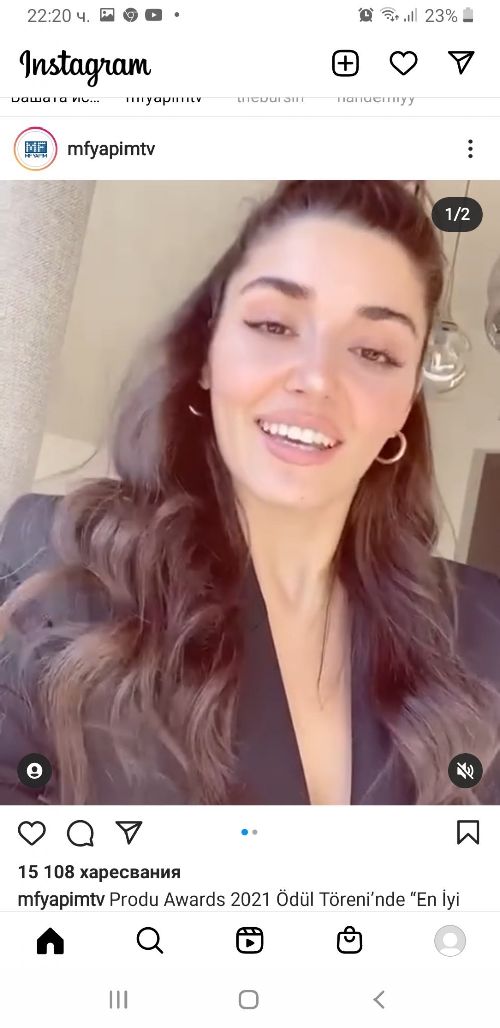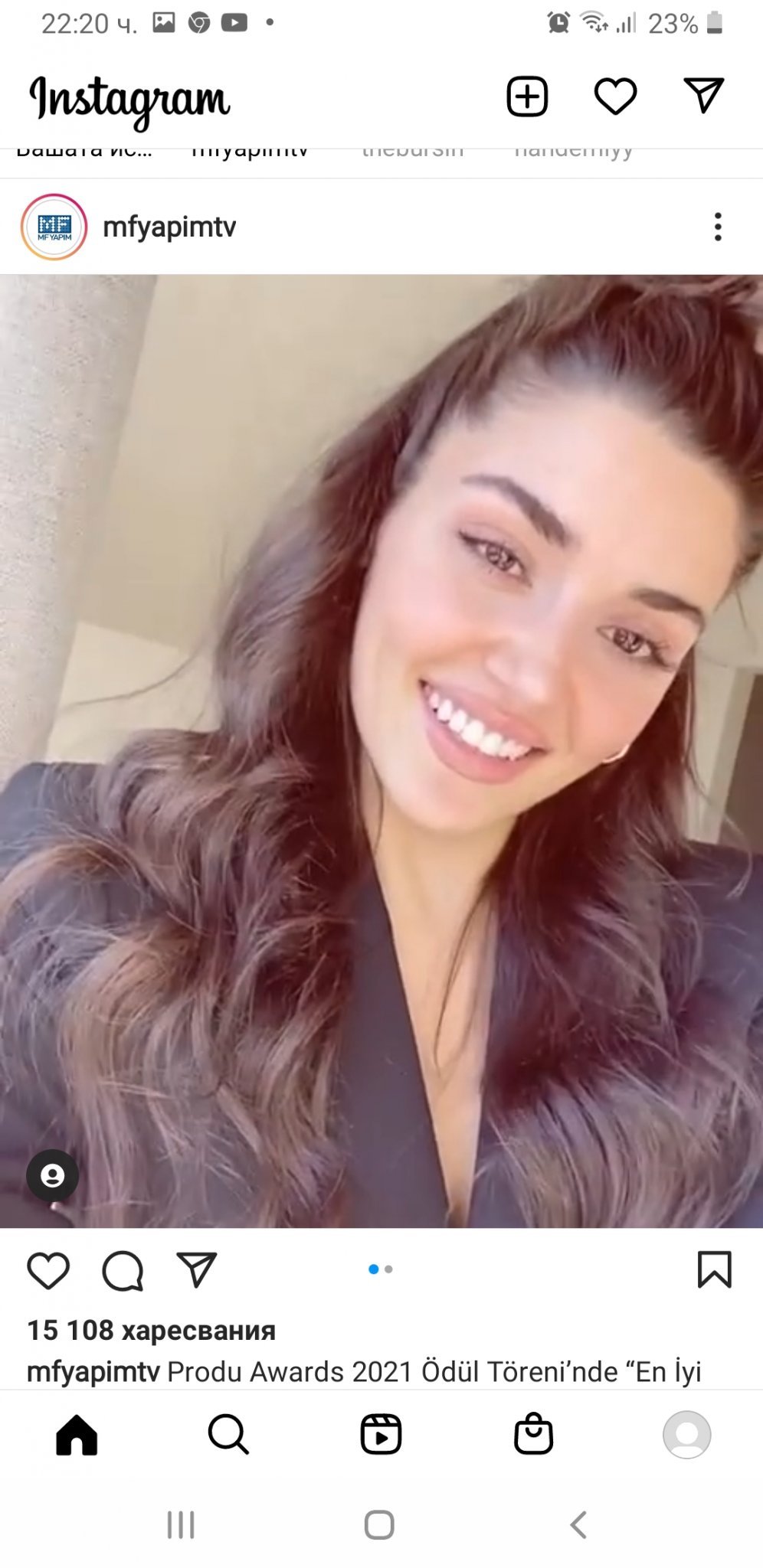Ето и клипчето, в което Ханде благодари за наградата. За първи път я чувам да говори на английски. Доста се усеща турският акцент.😁