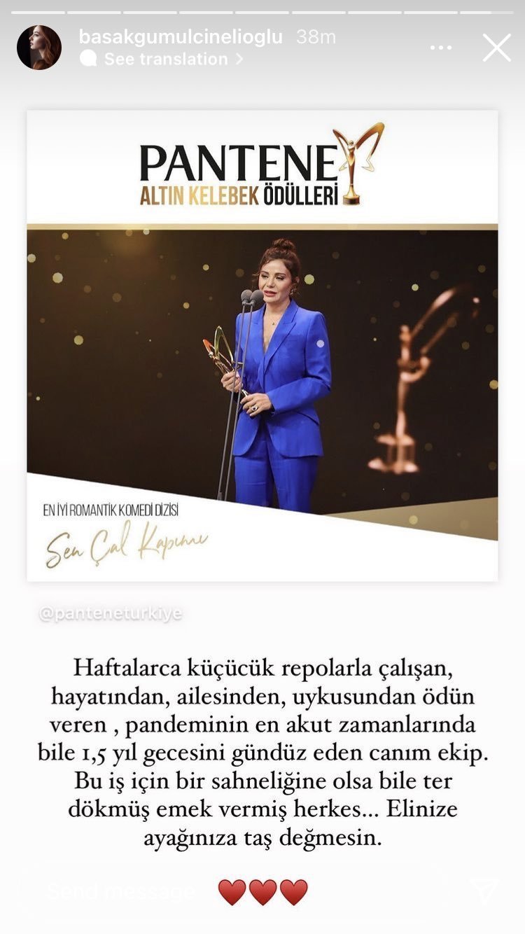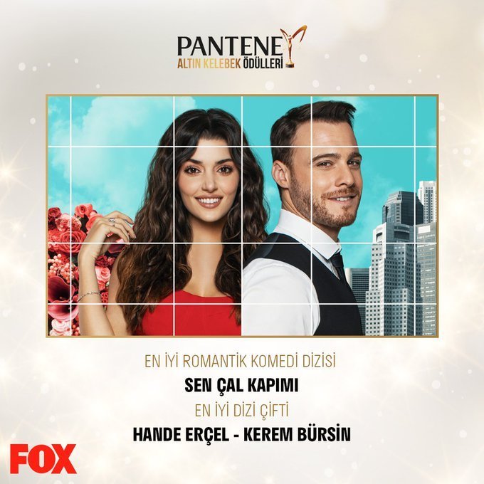#SenÇalKapımı не може да се насити на наградите!  На наградите Pantene Golden Butterfly „Най-добър романтичен комедиен сериал“ на годината беше Sen Çal Kapımı, а наградата „Най-добра двойка в сериала“ отиде при Ханде Ерчел и Керем Бюрсин. Heart Eyes