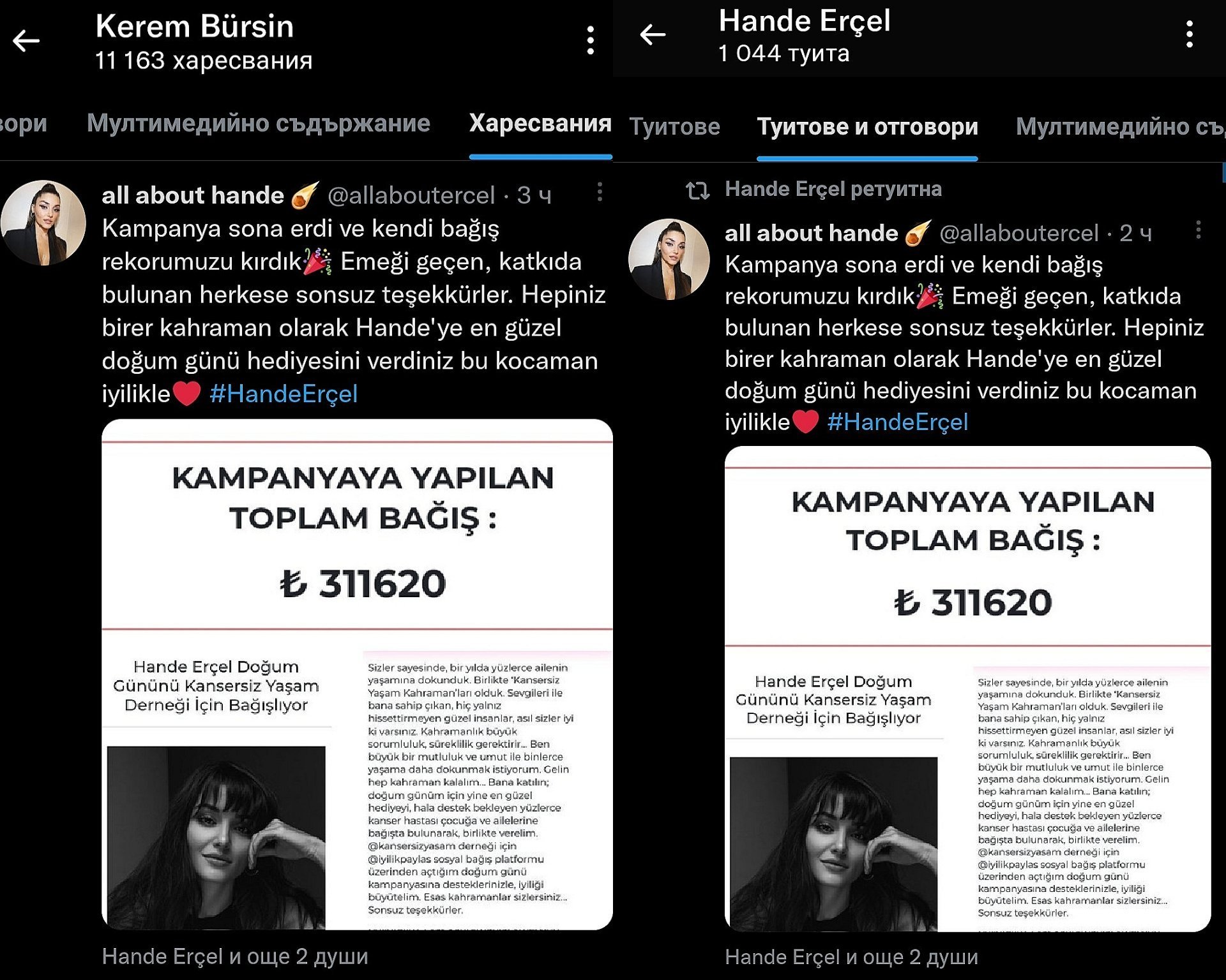 #HandeErçel благодари на своите фенове, които участваха в кампанията за рождения ден
