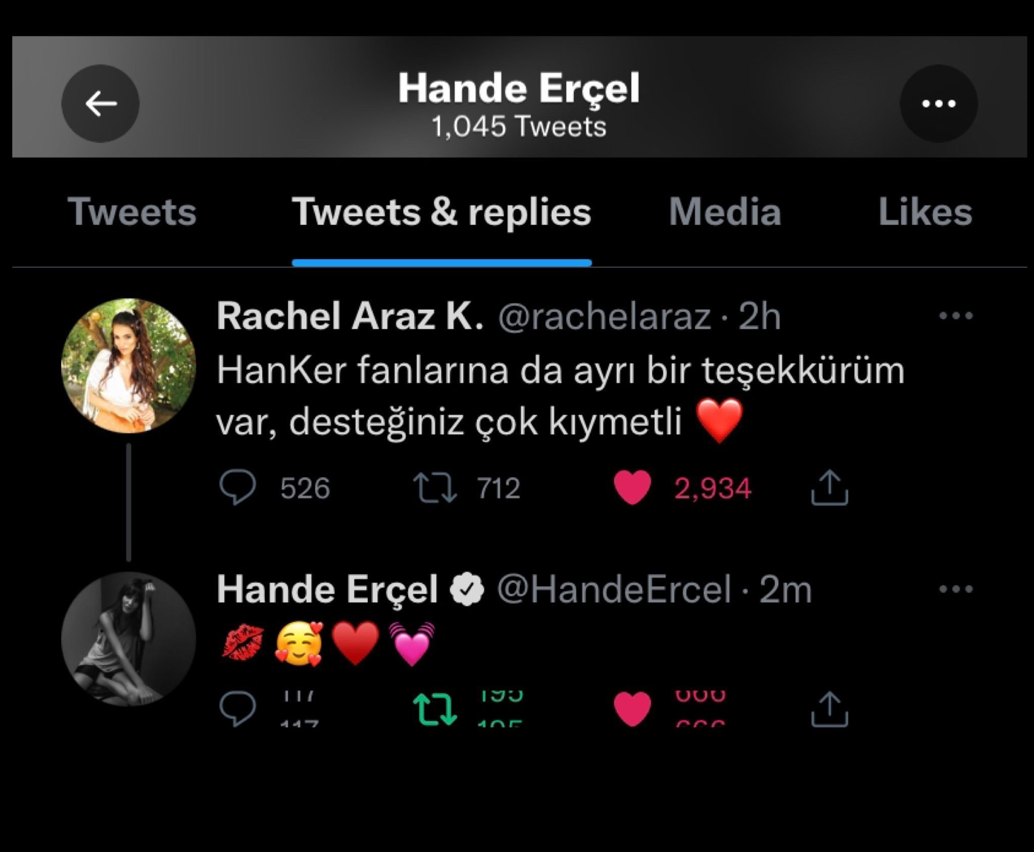 Рачел благодари на феновете на Ханде Керем: