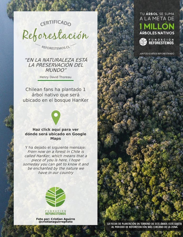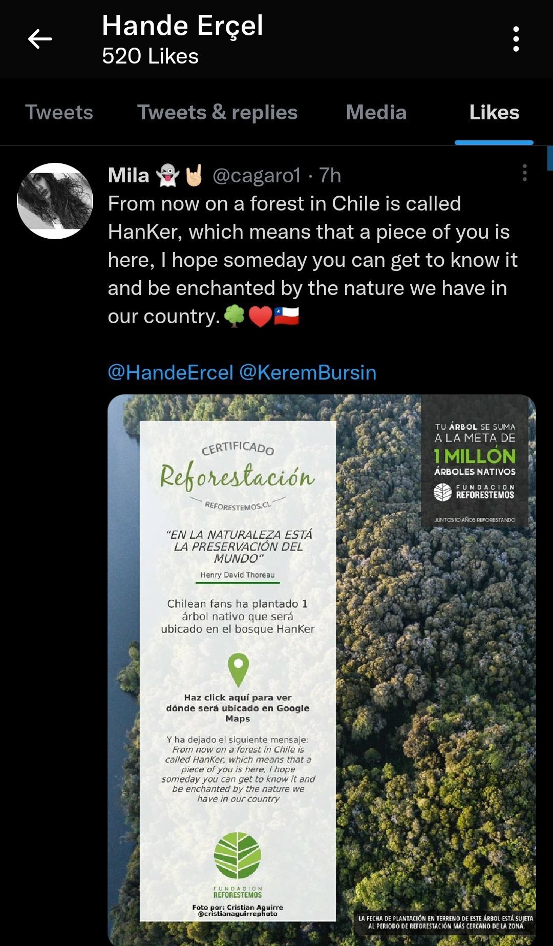 Феновете на Керем и Ханде в Чили са кръстили гора в региона като гората Ханкер, като дариха дървета.