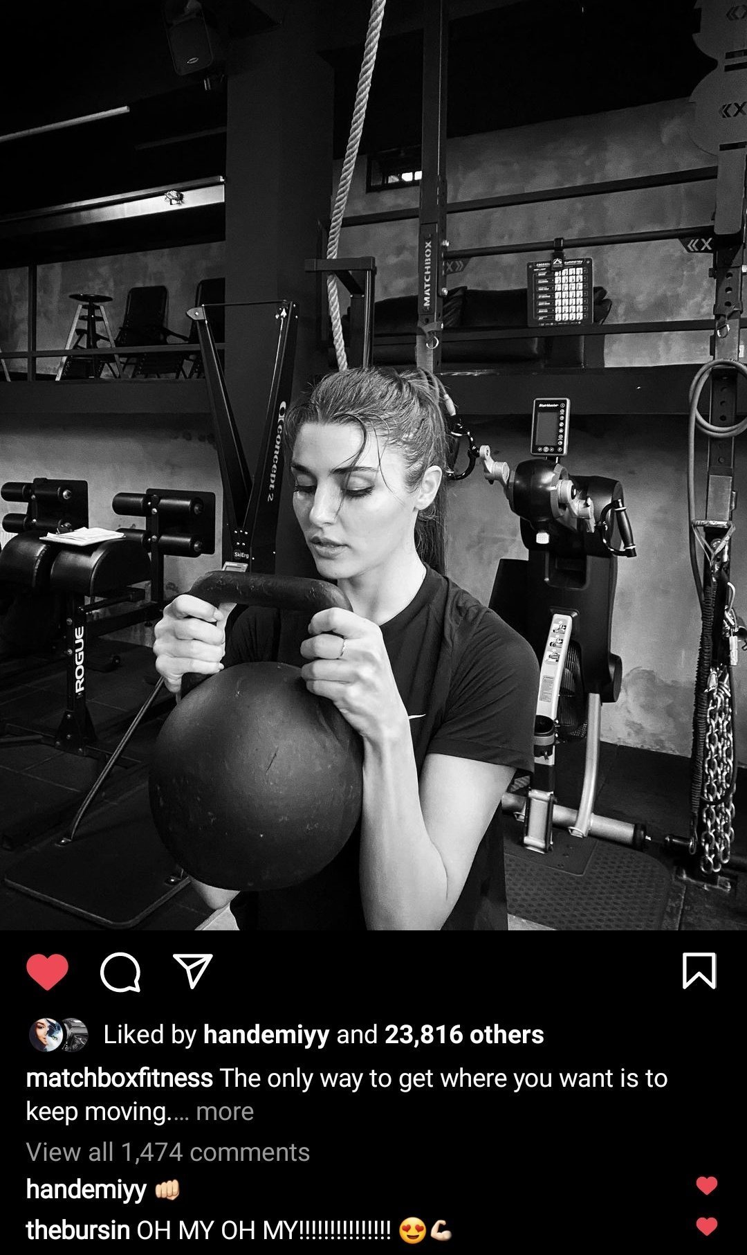 Ханде е страхотна жена. Потна, без грим пак е красива. Време е обаче за общо стори / снимка от фитнеса. Grinning Heart Eyes