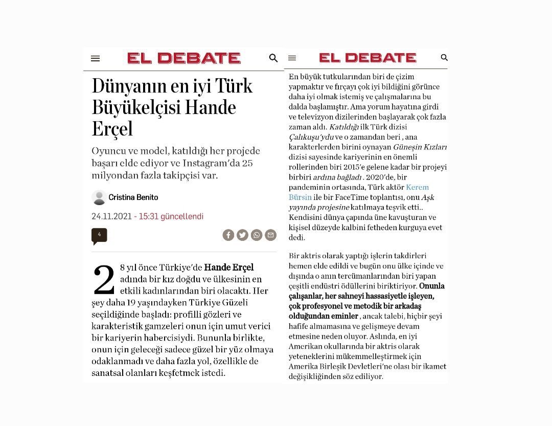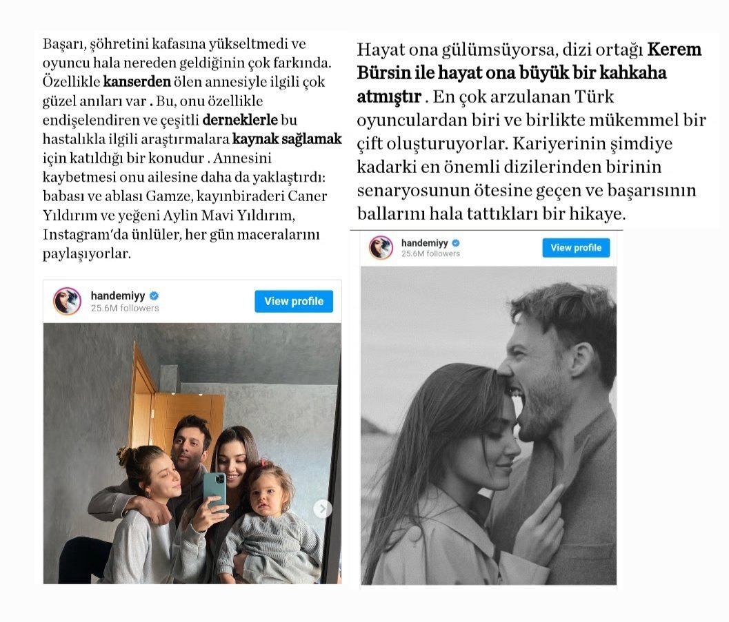 публикува статия на рождения ден на #HandeErçel . Споменават се неговите световни постижения, талант за рисуване, фенове и др.