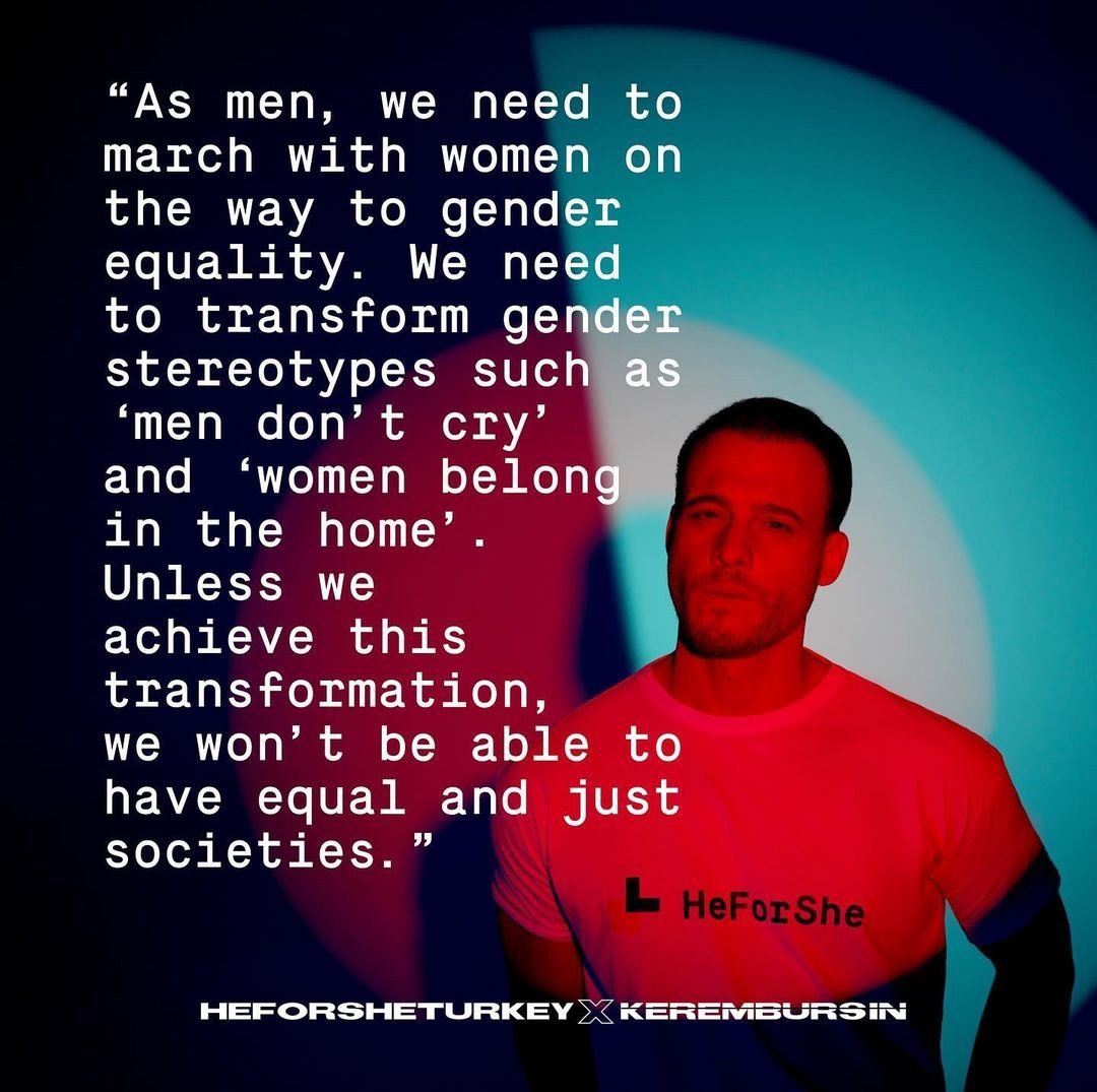 "Като мъже, ние трябва да вървим с жените по пътя към равенството между половете. Трябва да променим стереотипите за половете и да се отървем от сексистки преценки като "ти си мъж, не плачи", ти си жена, твоето място е у дома . ", ако не постигнем тази трансформация, ние няма да сме в състояние да създаде равно и справедливо общество"