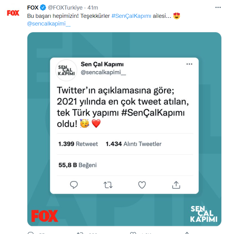 "Този успех е наш! Благодаря ви #SenÇalKapmı семейство"