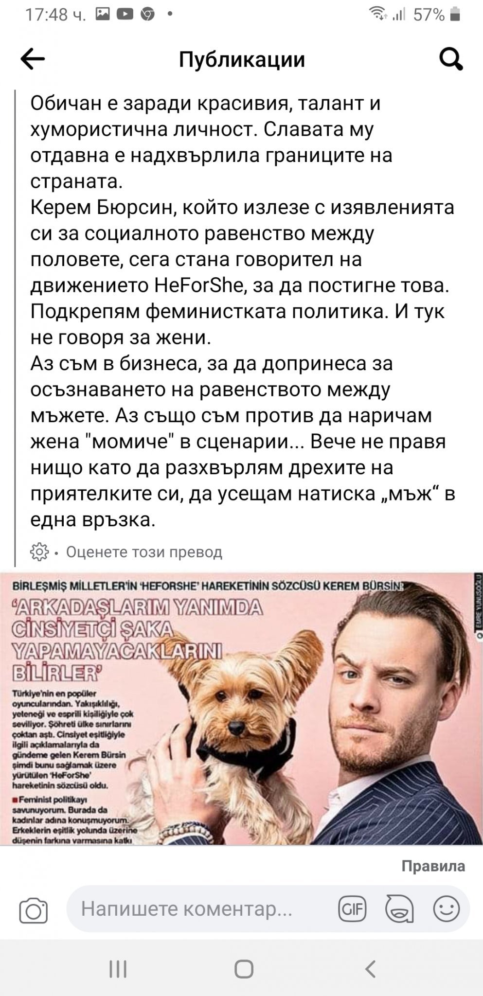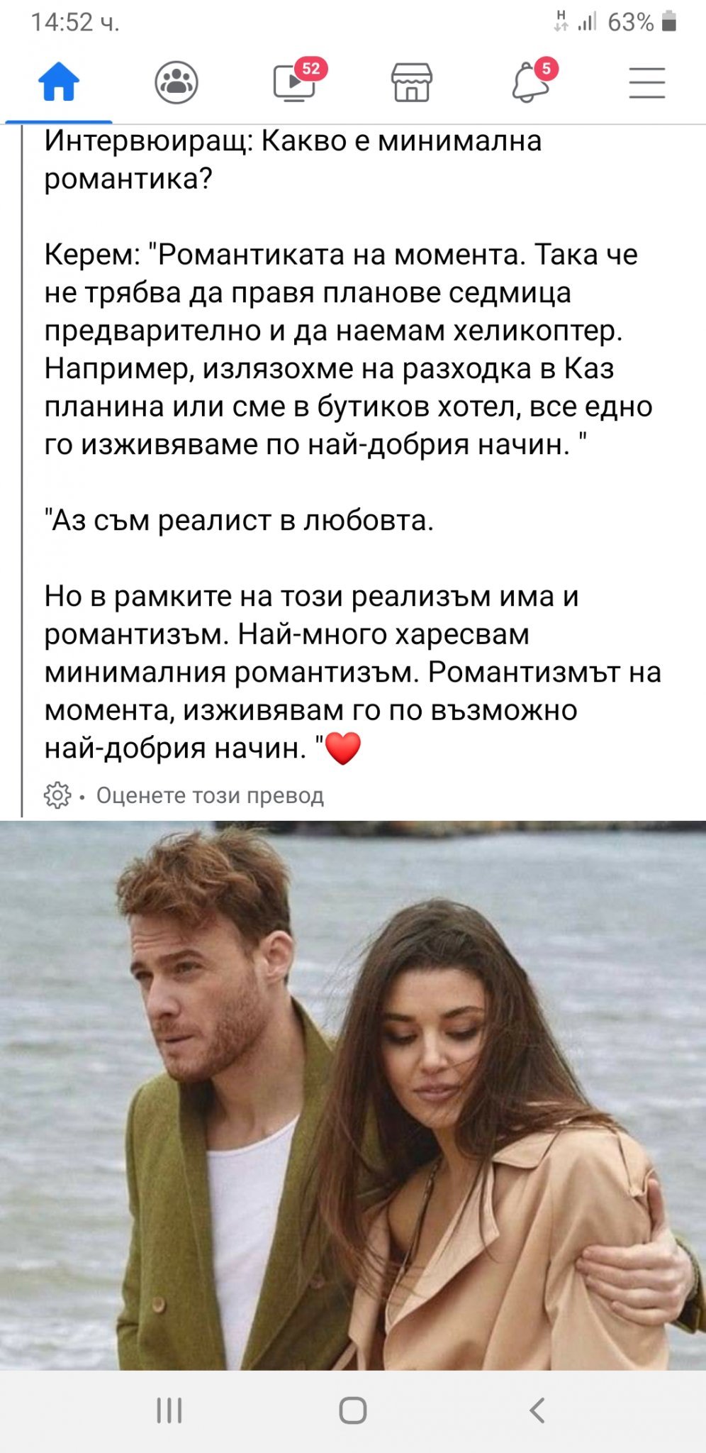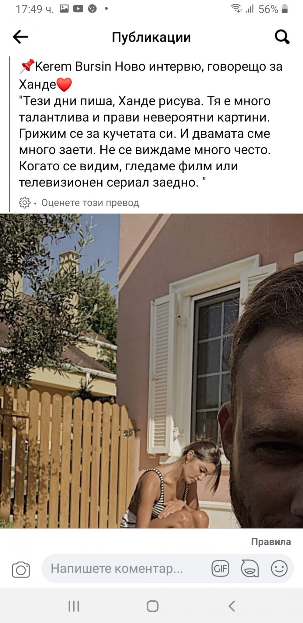 И така, продължавам по тази тема. След като изгледах това кратко видео разбирам, че думите казани от Керем са леко изкривени. Във видеото той говори за Ханде и тяхната любов. Когато водещата го помолила да говори за Ханде, той се е засмял и е отговорил: