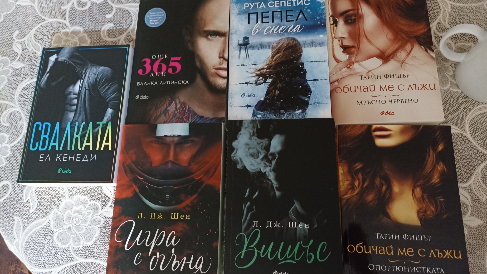 И моите от Сиела дойдоха. Няколко дни нямах имейл за потвърждение и им писах, веднага се задействаха и на следващия ден я изпратиха. Книгите, които поръчах са “Червения дракон”, “Мълчанието на агнетата”, “За жените и солта”, “Оставих те да си отидеш”, “Тръпка”, “Камък, ножица, хартия”, Събрани разкази на Кърт Вонегът и “Елегантността на таралежа”.