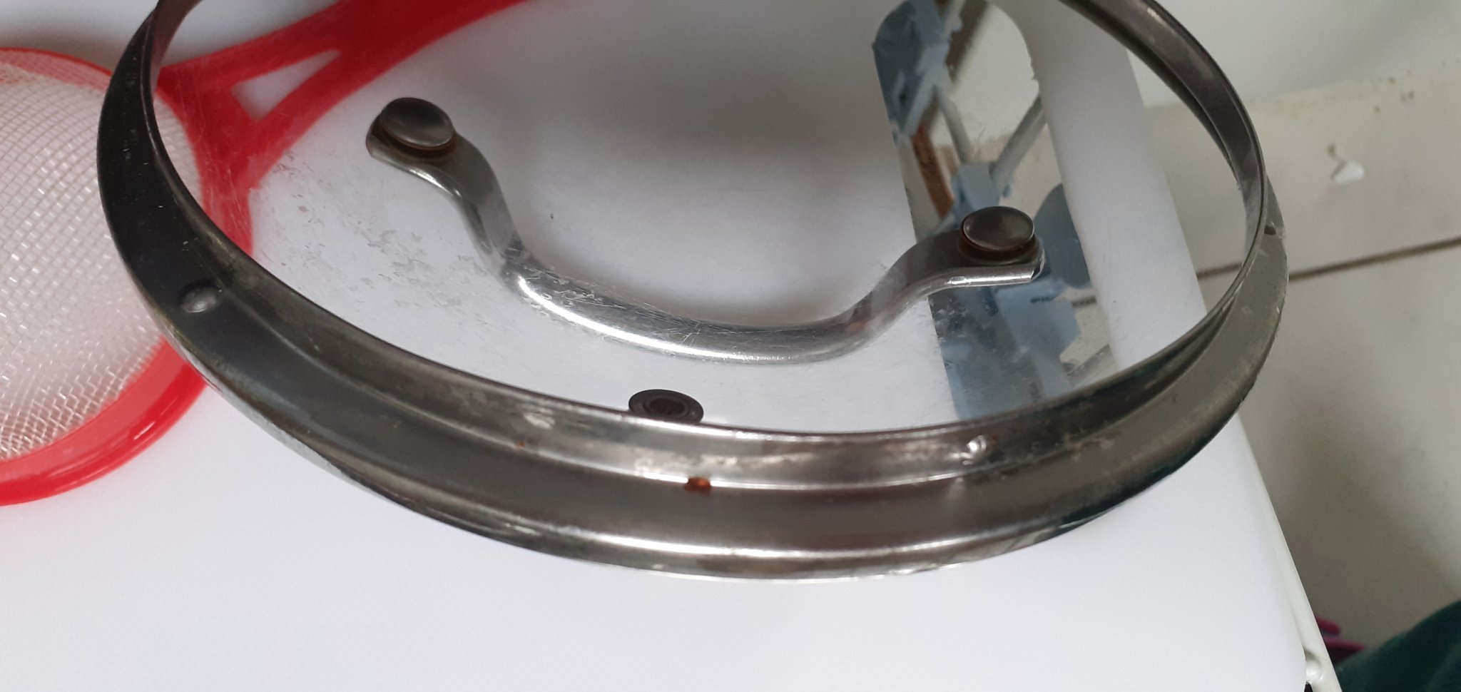 Трето миене на едночасова. Сложих един мой стъклен, мазен капак от тенджерка, в която е пържено дълго. Извадих го с дъга, мека, неразтворена мазнина и петна по неръждаемата стомана: