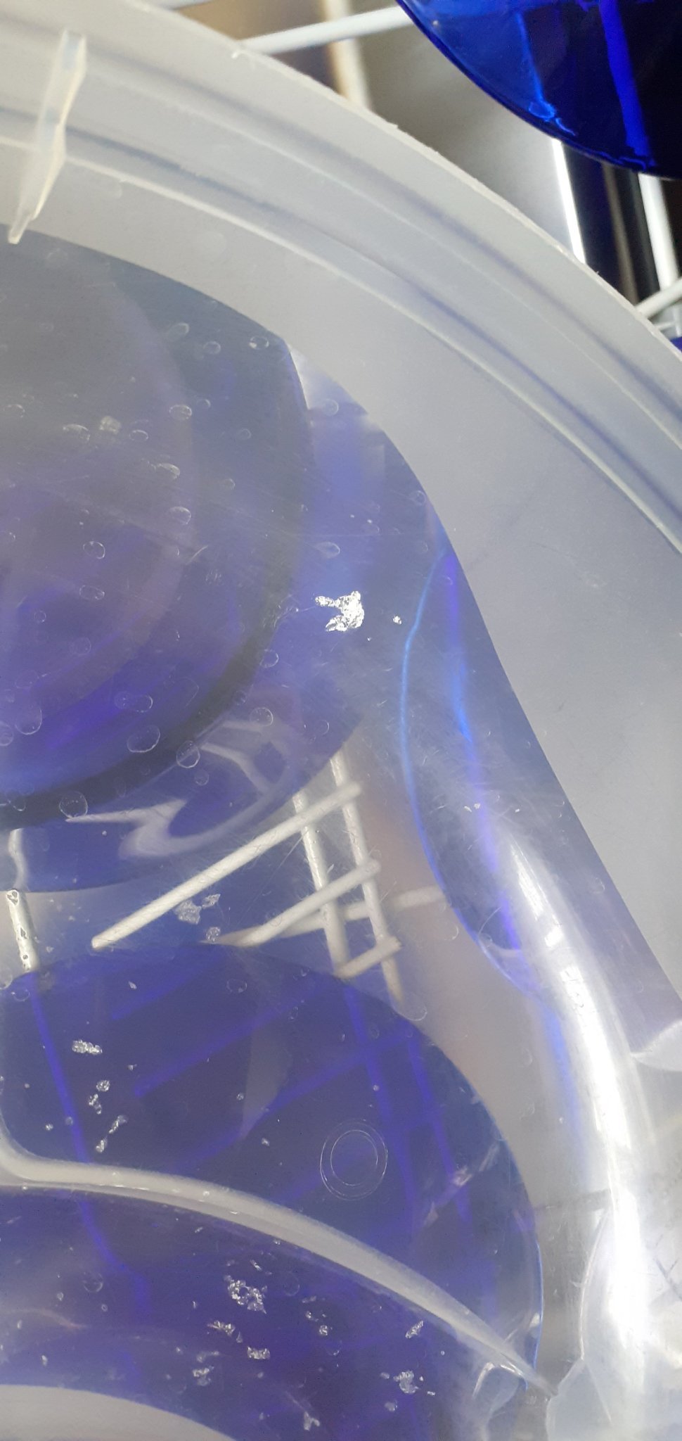 Пуснах отново на 65° едночасова и всичко се изми, но по пластмасата имаше капки вода, както и с Фейри, защото с сушенето е кратко. По дъната на купичките имаше бял филм и ми корозира леко няколко нови купички. Досега не ми се е случвало никога. По дъното на иноксово сито се появиха петна от ръжда, а Fairy platinum plus даже го изчисти от ръжда веднъж, когато позната го беше мила със зле нагласена сол.
