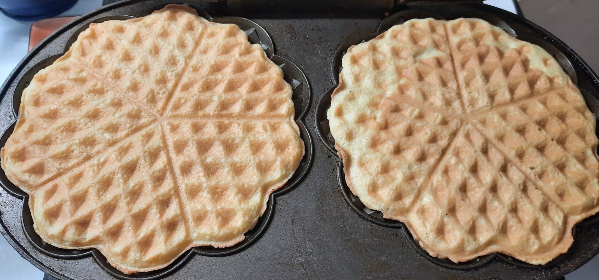 Ето, преди час хапнах гофрети с 2 яйца, бадемово брашно на око (ок. 2-3 с. л.), малко зехтин, сол и бакпулвер. Вътре сложих печени тиквички (останали от кутията на малката) и по половин малка печена чушка- и тя последна в буркана. Много ми беше вкусно. Гофретникът е за почистване, но... 😁