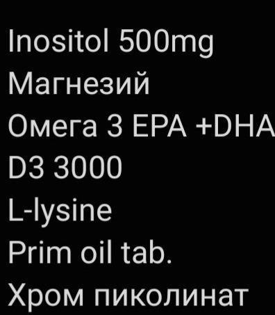 Трябват ти големи дози магнезий при всички случаи, К1 от листа, Ц пак от листа, цинк заради висок инсулин и акне, инозитол, фолат, Д3 понеже си в дефицит. Това първо.