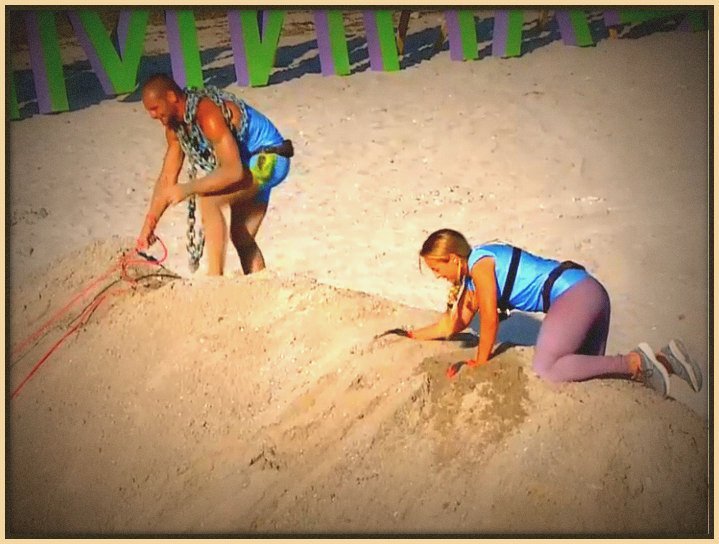 Боби реши, че може да изтегли кануто, когато видя това на Паулина как е заровено и колко е плитко. Да, ама не. Той изкопа плажа направо. / Писали сме заедно с Катрала/ И мисля, че тук му стана ясна работата. Факт е, че вече не си даваше зор. Не харесвам Поли, но няма да кажа нищо. Няма да се само цитирам от вчера, когато попитах няма ли да и е неудобно като види "предимството". Моля феновете на Полина да ме разберат правилно. Аз не обвинявам нея за купеното предимство, а продукцията за двойния стандарт. Но това не е изненада.
