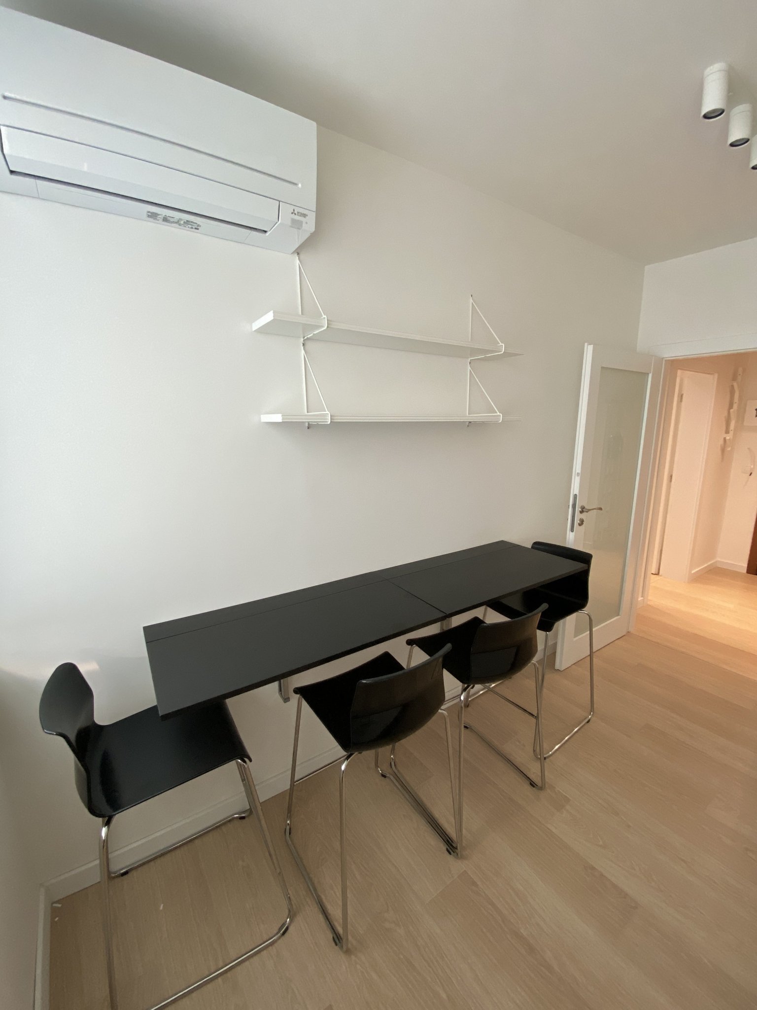 Много е стабилен механизмът отдолу. Смятам, че ще издържи. А защо избрахме такава... ами това са ни столовете от Малайзия, които ползвахме там към бар-плота и това беше идеалният начин да им намерим приложение. Иначе си има нормална трапезарна маса в хола.