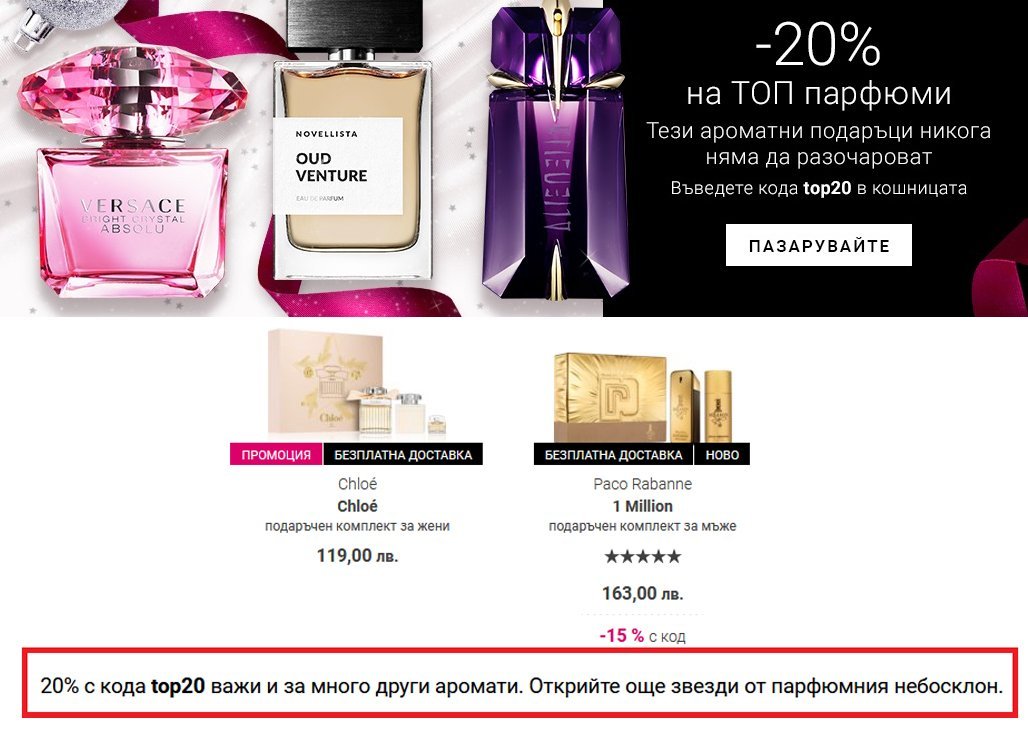 А "-20 %  в notino на избрани аромати с  код  top20" изобщо не намирам къде са. Може ли линк? Виждам само тези с 15-те процента