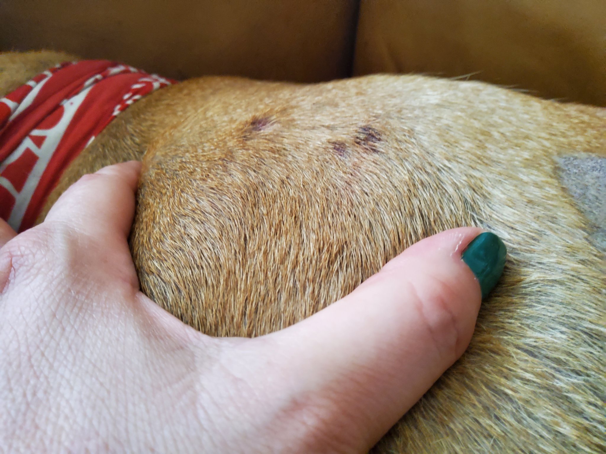 Много ми е скапано. Кучето има две ранички, изглеждат точно като ухапване от змия. Змия нямаме и сега съм в чудене къде се е подредил така.