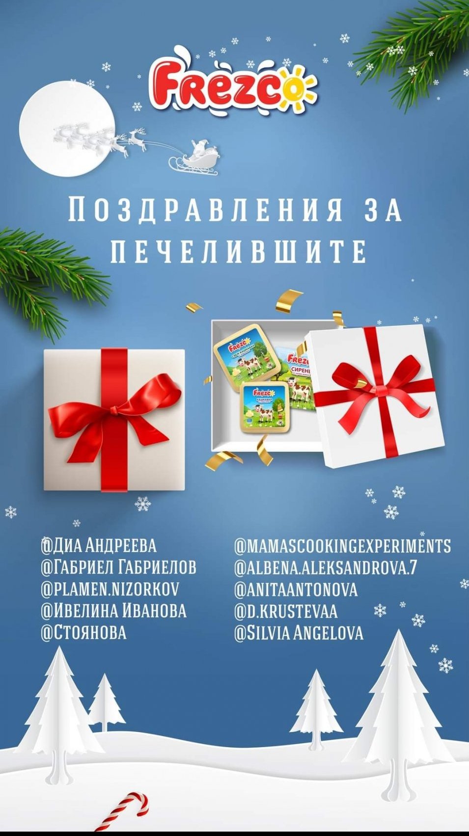 И Frezko са обявили печеливши на стори във фейса, но не успявам да ги щракна. Няма ме там, но играх само за продукти 😂😉